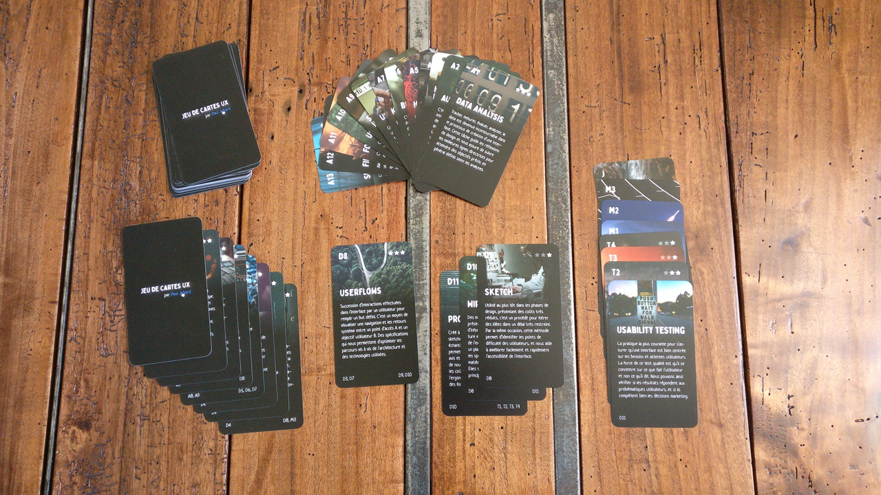 "Les français sont toujours en retard", voilà un bien beau cliché, que nous entretenons malheureusement dans le domaine du digital. En matière d’UX, nous sommes bien en retard face à l’évolution mondiale, et avons un réel besoin d’éducation. Nous parlons de VX dans différentes villes européennes quand il faut encore définir l’UX chez nous. En tant que Designer, c’est une problématique que j’ai prise très aux sérieux au sein de mon environnement professionnel. Pour l’occasion, j’ai conçu un jeu de cartes permettant de comprendre les différentes tâches qu’un UX Designer est amené à effectuer pour le bien d’un projet, que ce soit en matière d’analyse ou de conception.